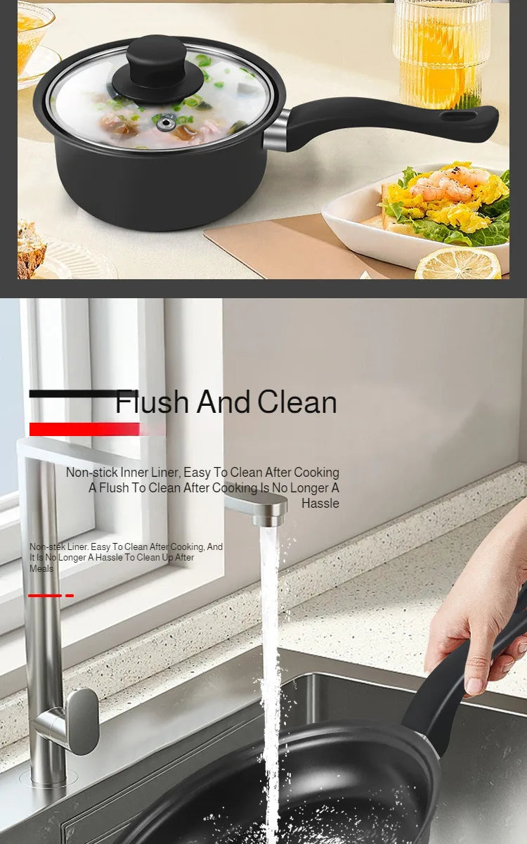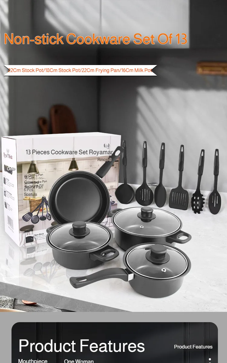 13 Piece Cookware Set Milk Pot Soup Pot Flat Bottomed Small Frying Pan with Lid And Shovel Kitchenware Set for Cooking pots Set