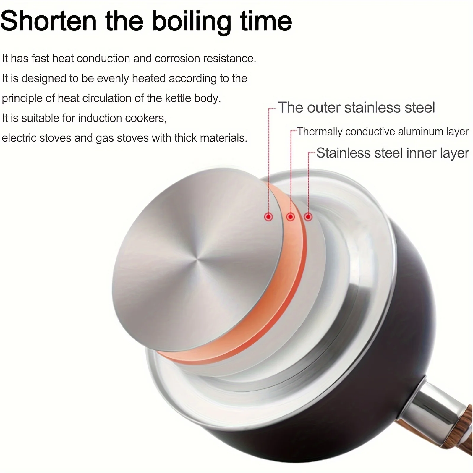 1PCS 2.5L Stainless Steel Whistle Kettle With Heat-Resistant Handle Thickened Outdoor Camping Kettle for Gas & Induction Cooker