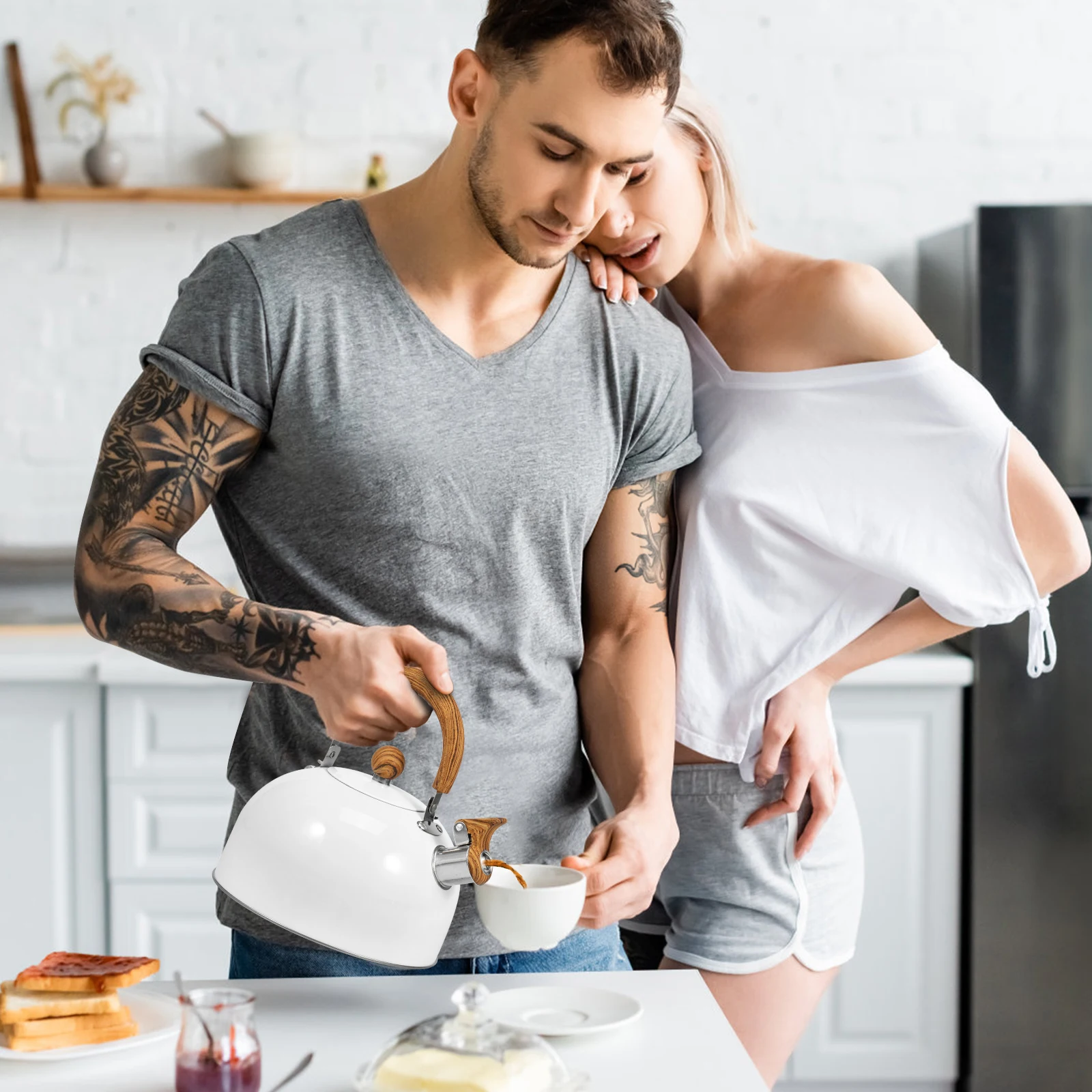 [Loud Whistling] This tea kettle makes a loud whistling sound when the water reaches the boiling point. Whether you are focused on housework, watching a movie, or enjoying music, the teapot will whistle to remind you when the water is boiling. No need to worry about missing it and prevent the water from boiling dry.