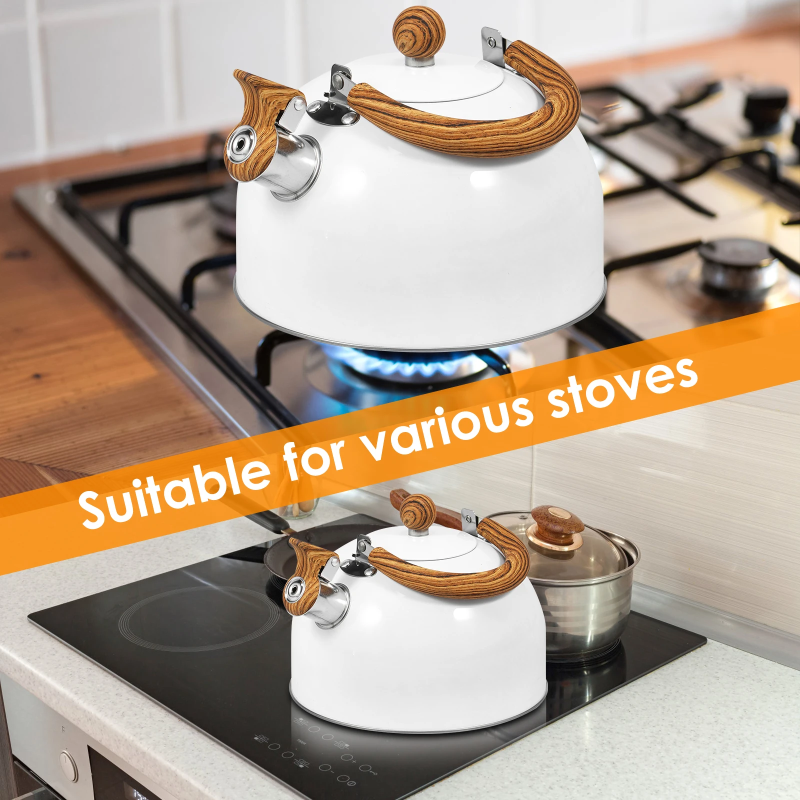 3/2L Tea Kettle with Anti-scald Handle Rustproof Whistling Tea Kettle Food Grade Stainless Steel Stove Top Tea Kettle