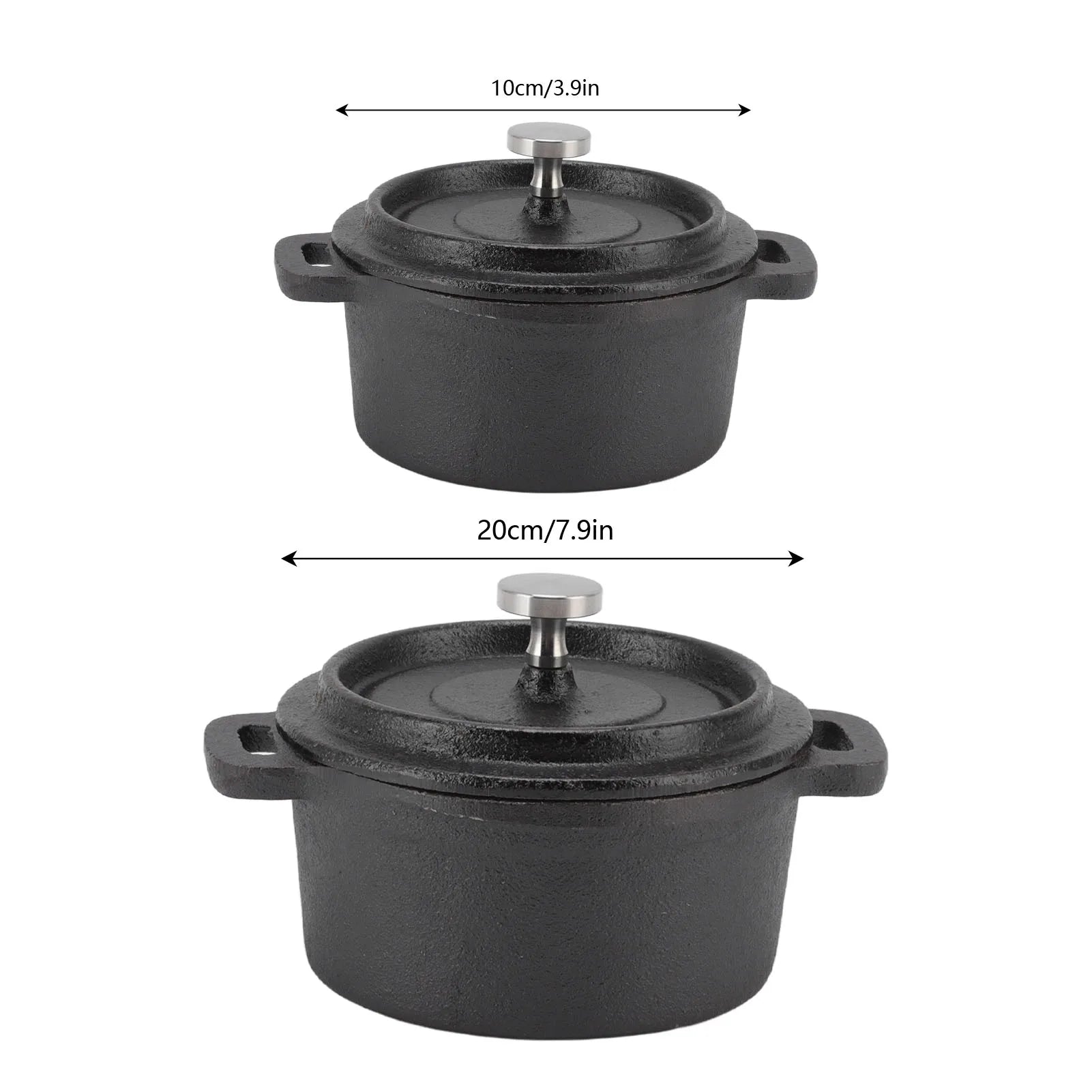 Cast Iron Pot Dutch Oven with Lid Double Traditional Thickened Cooker with Handle for Slow Cooking Barbecue Pasta Kitchen Tool